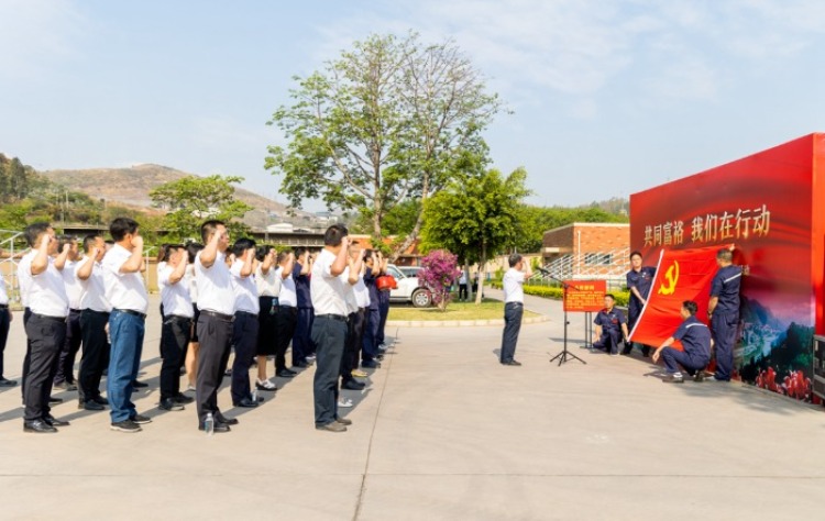 現(xiàn)場參觀結(jié)束后,舉行“重溫入黨誓詞”活動,全體黨員鏗鏘有力的宣誓聲響徹全場,大家以昂揚的姿態(tài)表達著為黨的事業(yè)奮斗終身的堅定信念,在莊嚴(yán)肅穆的氛圍中,再一次接受心靈的洗禮。